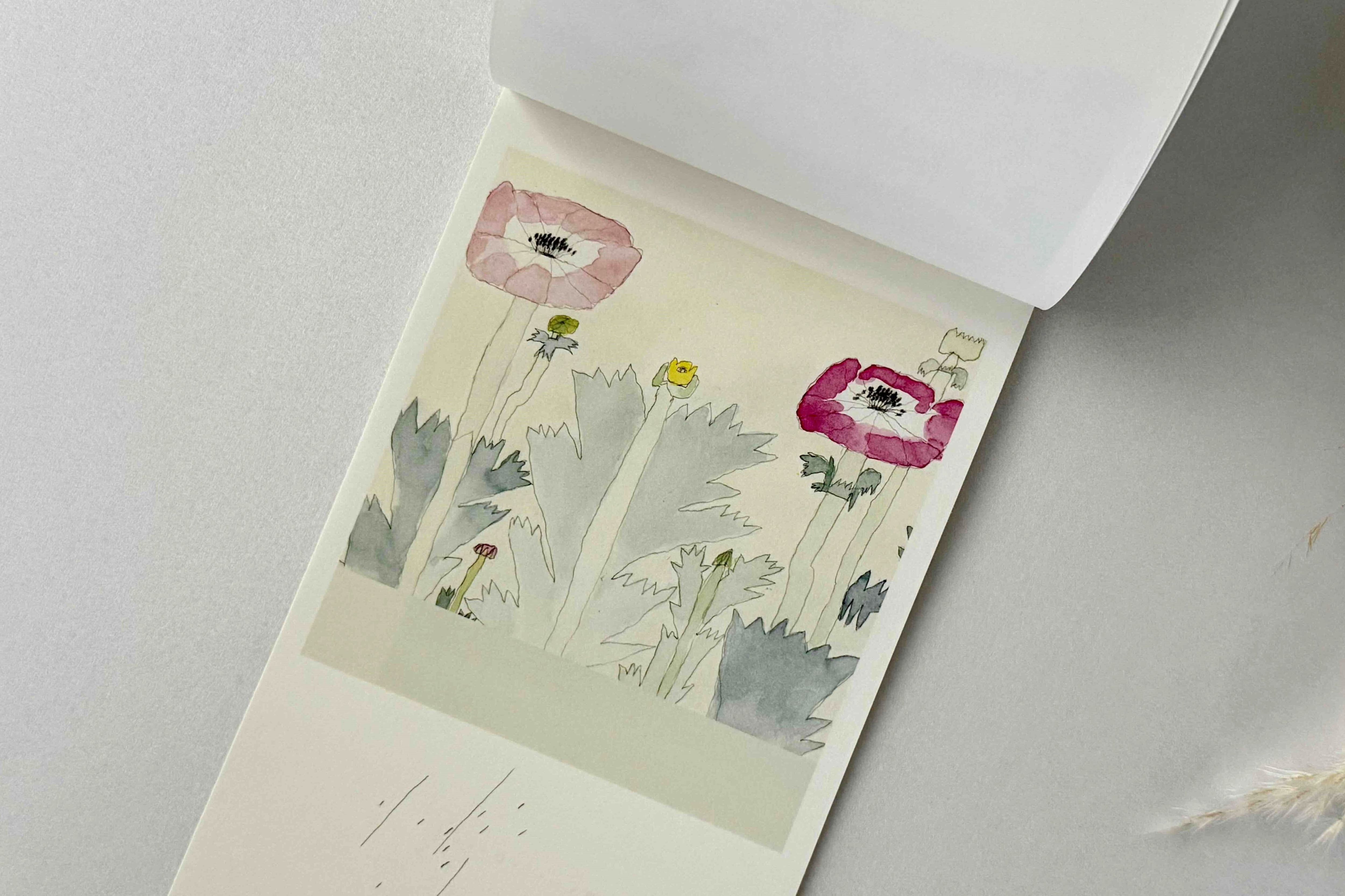 カラーの絵12点+モノクロの線画12点からなるドローイングのカレンダーです。