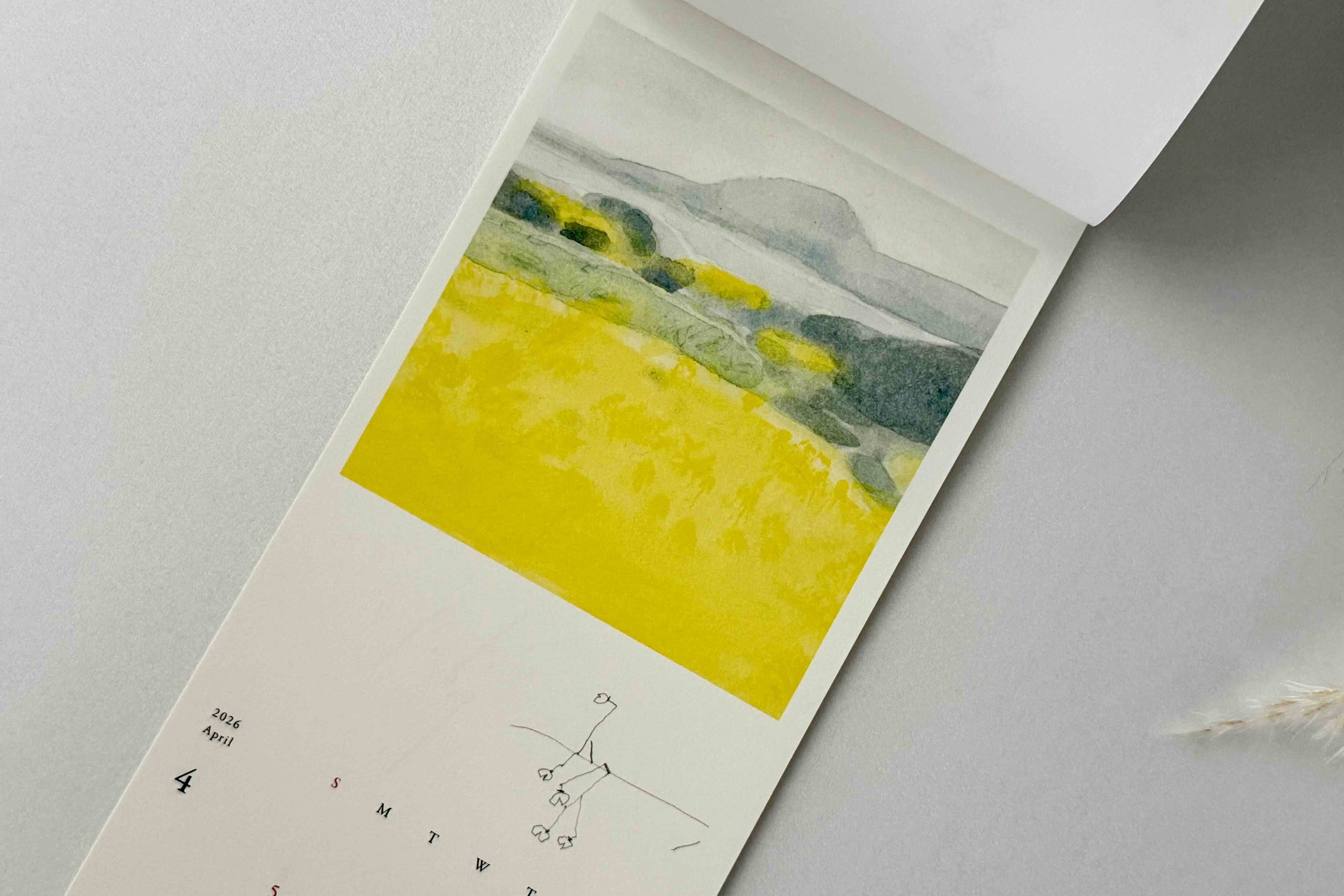 「毎月、小さな絵を飾るように、楽しんでもらいたい」という想いでつくられた、どんな場所にも飾りやすい縦長カレンダーです。